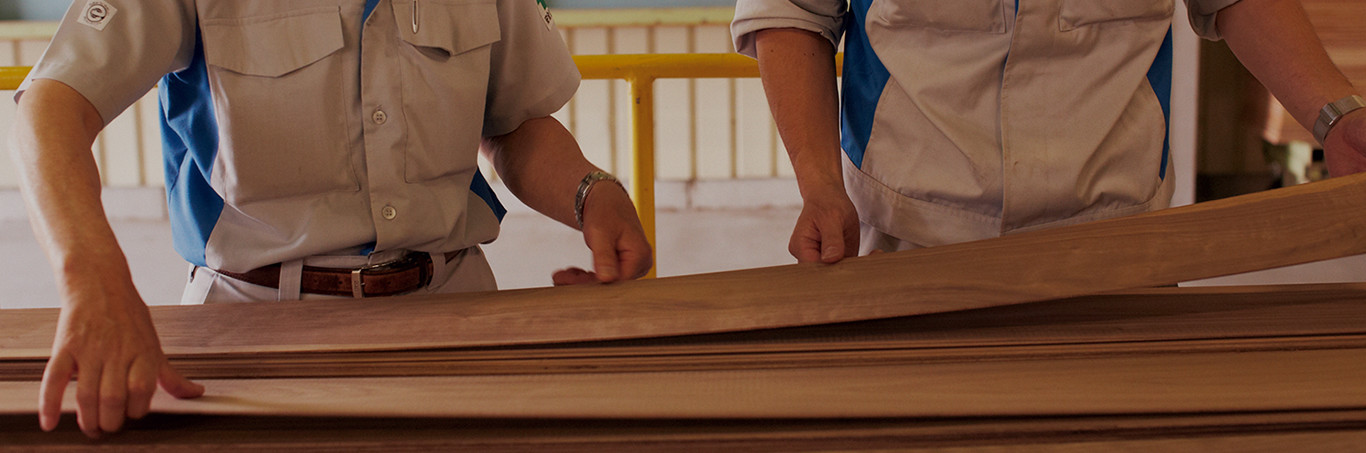 朝日ウッドテックがこだわっているのは、化粧材になる突き板や挽き板の加工、最終製品の完成まで、内製に徹す ること。自らコントロールできる内製に徹することで初めて可能になる妥協なき品質こそが朝日ウッドテックの証だからです。