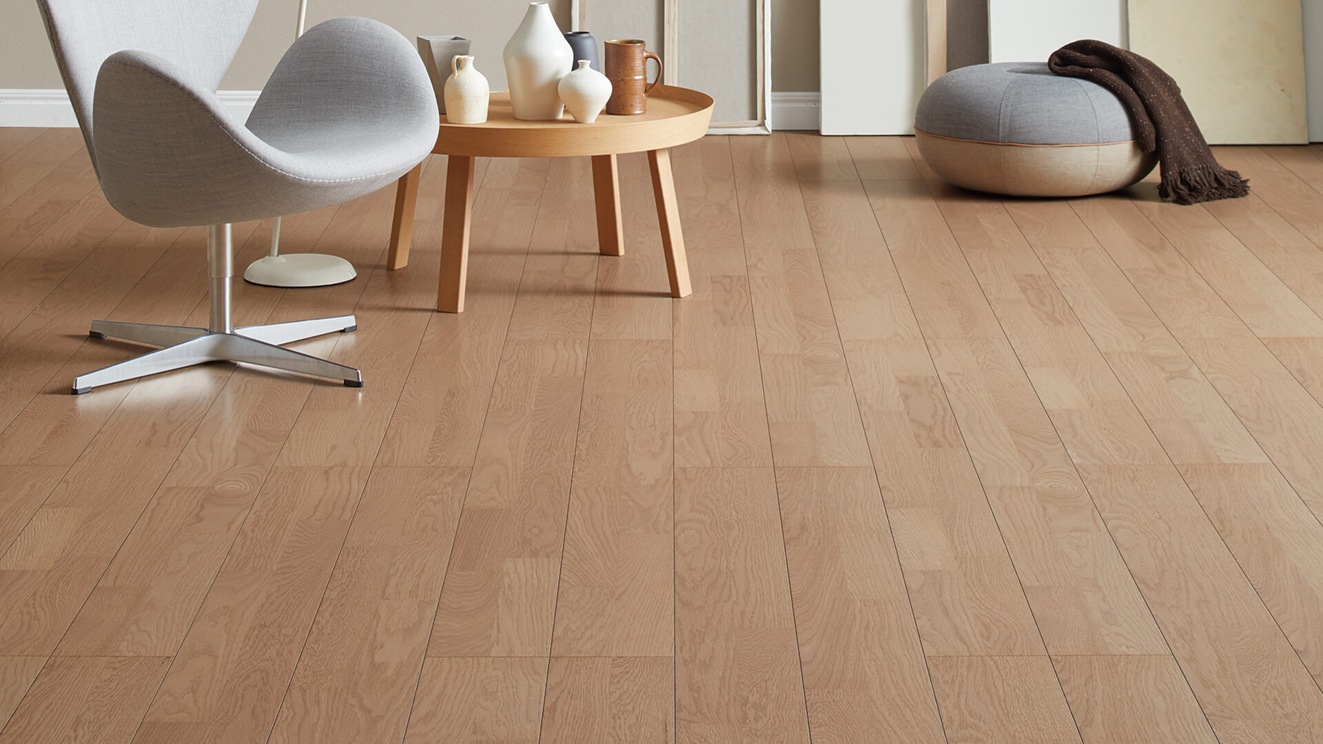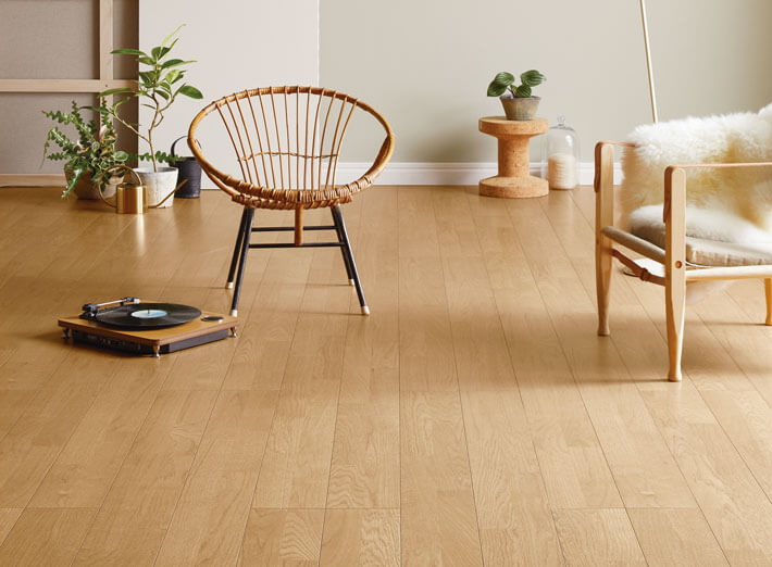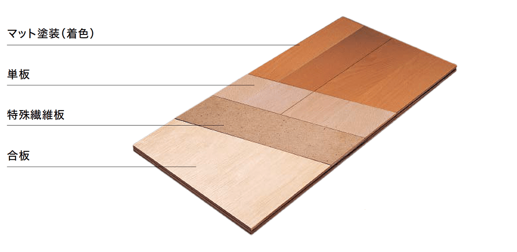 特殊繊維板により通常合板製フロアに比べ、傷に強い性能をもっています。床暖房対応。