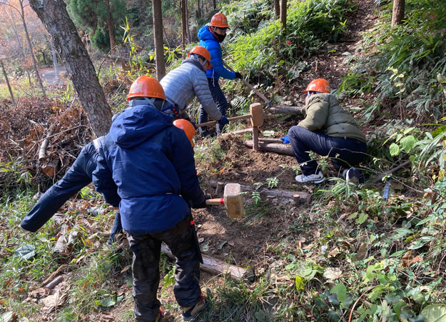 社会貢献と従業員への環境教育の場として、里山保全活動団体の協力の下、泉佐野市の里山において下草刈りや間伐作業などの保全活動を行っています。SDGs推進活動の一環として、今後も継続してまいります。